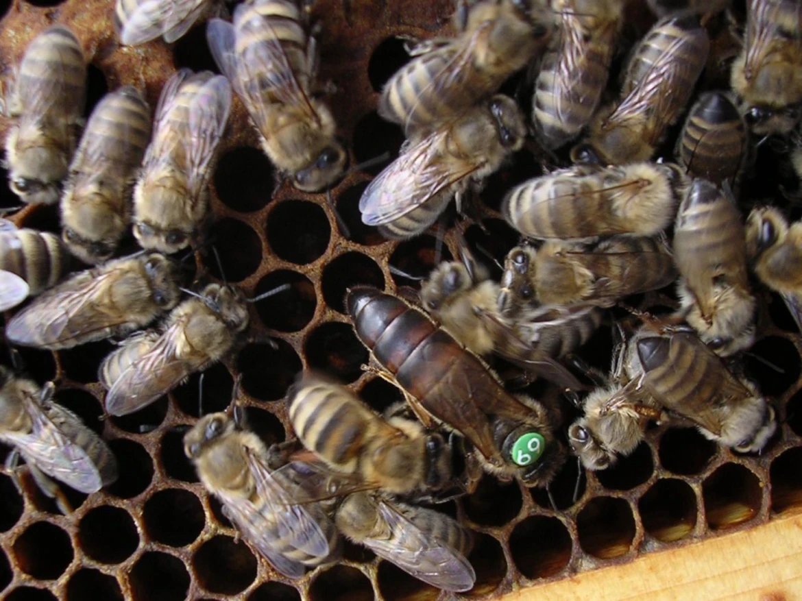 Die Bienenkönigin ist das einzige Weibchen im Stock, das Eier legt und Nachkommen produziert.