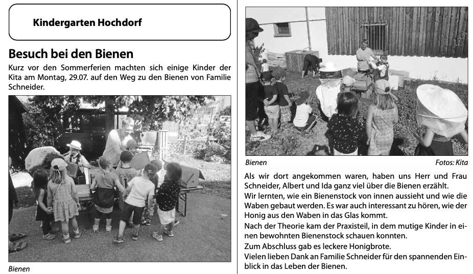 Nach 25 Jahren Imkerei betreuen wir mittlerweile etwa zehn Bienenvölker und genießen das Leben als Familie mit drei Kindern. Die Arbeit mit den Bienen bleibt ein fester Bestandteil unseres Alltags, den wir auch unseren Kindern näherbringen. Dieses Jubiläum erfüllt uns mit Stolz und motiviert uns, die Tradition weiterzuführen.