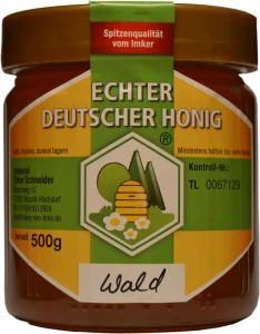 - Bestehend aus überwiegend Honigtauhonig (Waldtracht)
